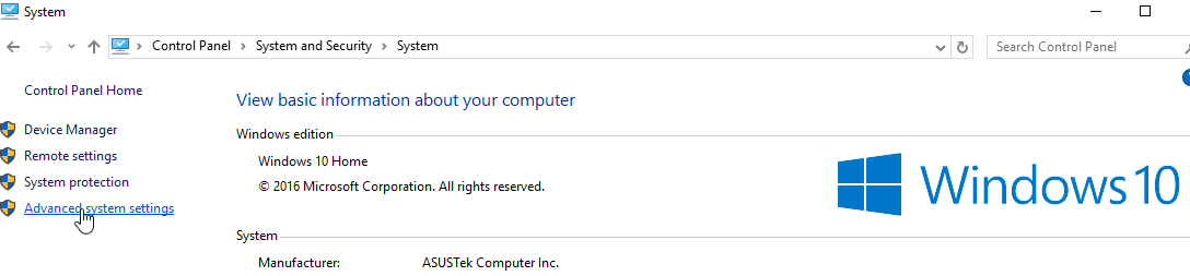 On the left side, click on Advanced system settings