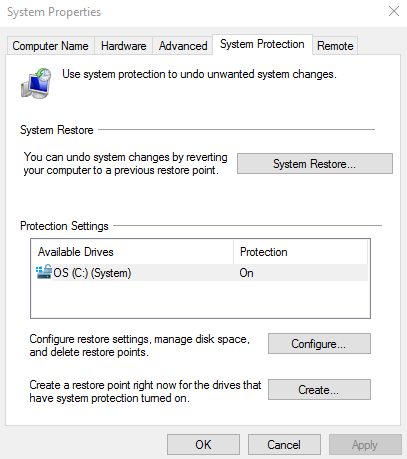 Click on the System Protection tab