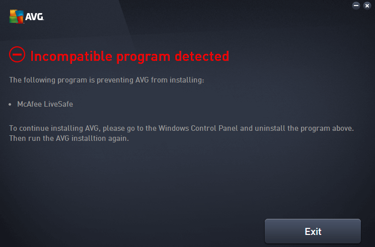 It may be tempting to try to run multiple real-time programs, as no one program will catch everything, but in most cases the programs won’t let you do this. For example, AVG will give you a conflict error if you try to install it while you have another program, such as McAfee, also installed: