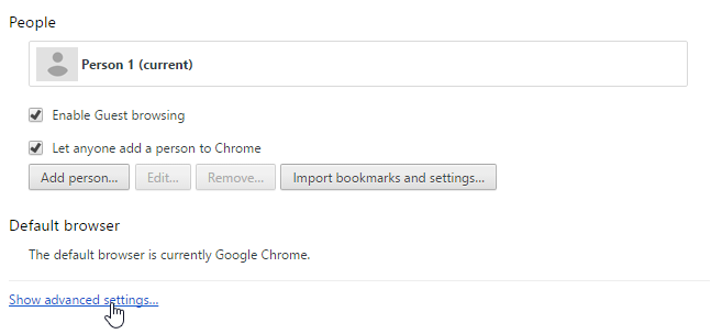 Click on Show advanced settings at the bottom (if they aren’t already shown)