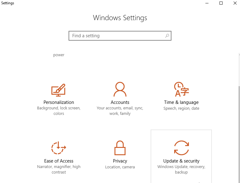 Select Update & security, and then Recovery